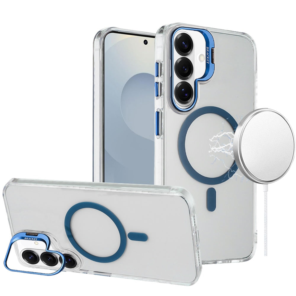Samsung s26 Plus Transparent HQ Hybrid with Metallic Camera Stand Magnetic Ring Case - Dark Blue